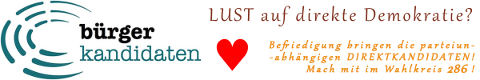 Daher wäre es sehr erfreulich und nützlich, wenn baldmöglichst, jedoch spätestens zur Bundestagswahl 2021, sich ein Bürgerkomitee im Wahlkreis 286 Schwarzwald-Baar gründen würde, um sich auf die Suche nach neuen Bewerberinnen und Bewerbern aus deren Mitte oder extern (z.B. bekannte Persönlichkeiten) zu machen. Wer lustig ist, los geht's mit einer Meldung als Ansprechpartner.